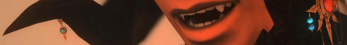 He had been living in Gridania for five years before he met Katsu. He took a job posting from the board that had a meeting place and time and paid well, which brought him to the Quicksands in Ul'Dah. While he waited, he happened to sit right across from another Xaela, though he couldn't see him at the time. To make a long story short, they hit it off instantly, meeting again and again after that, finding conversation easier with him than Zamis had found with anyone else. Being with Katsu was the first true ray of Sun he'd felt since he lost his sight, and despite all the walls he tried to build and the fear that permeated that scar in his heart, Katsu was the third person Zamis fell in love with.Through Katsu's friend, Tai, they found a way to treat Zamis' eyes, treating his lifelong ailment. In the end it succeeded and soon enough Zamis could take off his blindfold for the last time, never needing to wear it again.Despite his voidsent's influence and attempts in trying to prevent it, more of Katsu's connections led him to the opportunity to extract his voidsent. It was a terrible process, testing the true limits of his and Katsu's relationship and the extent of what his body could handle, but the pain and heartache was more than worth it. Something he never thought was possible became possible- he had finally rid himself from Shal. A little piece of his voidsent remained, but it stayed locked away within him, never to be summoned again.The process didn't come without consequences, however. All the scarring he'd accrued when Shal had taken him over in the Thirteenth remain permanent, sensitive to the slightest touch. He keeps bandages on them to avoid anything, including cloth, making contact. He went blind in the eye used to seal Shal's contract, a side effect that medicine can't fix. Though he kept his height and bulk, he lost his sharp rows of fangs, turned back into his regular set of pointed canines and mandibles. He kept his claws and altered tongue, but lost the purple glow of his scales. Zamis considers all his physical changes and detriments a welcome exchange for the silence and peace it brought back to his mind.He now lives his days as a bartender, still taking odd jobs when he can. He runs his own secretive underground organization, bringing people with the same purpose together into a small community he often calls his home away from home. Though far less honest than his on-paper jobs, he built it from the ground up himself, and has found great success. He is far happier than he's ever been, recently married to Katsu, the man that helped him through his lowest points, despite going through a series of unfortunate mishaps leading to their impromptu wedding. He is ever distrustful of strangers, now more than ever, but those he holds close know him for who he really is- a big, goofy guy who loves to listen to stories as much as he loves to tell them. He is far happier than he could ever remember being, and knows that this time, it will last.